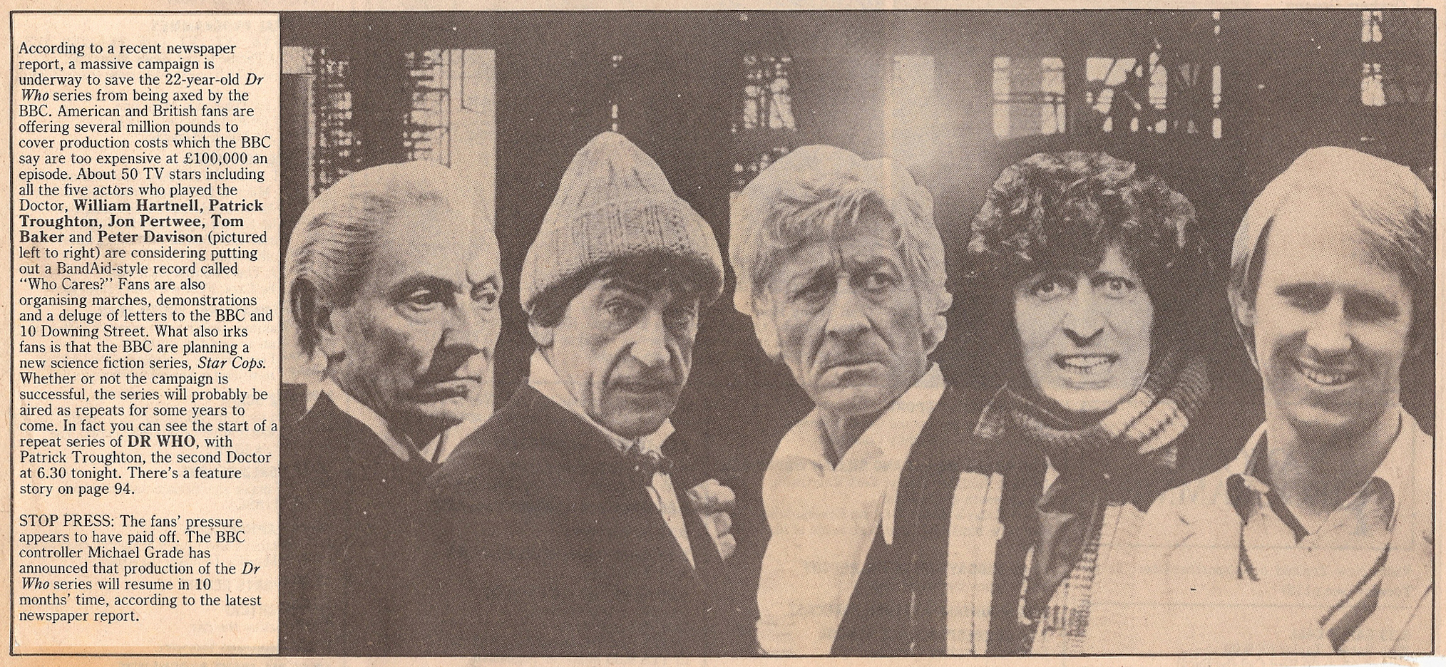 an assurance from BBC controller of programmes Michael Grade that Dr Who would not be finished off completely. However, having won that battle there is
