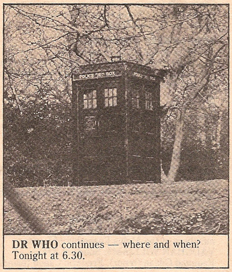 On Friday there's a whole hour of Dr Who on TWO, and as the BBC has decided it cannot afford to continue making the series we'd better get as much of it as possible now.