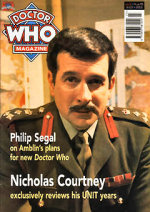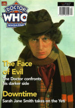 Anyone interested in Downtime, the forthcoming Yeti video drama, ought to check out this issue for the great behind-the-scenes coverage and many photos. Turlough's introductory story was at first going to have been The Song of the Space Whale by comic strip writer Pat Mills. In an insightful interview Mills exposes the script editing approach of Eric Saward in a less than complimentary manner. All praise to DWM for printing such a frank view; illustrating just how far it has matured in recent years. The magazine scored a major coup in interviewing the costume designer of the hugely expensive epic Kevin Costner movie Waterworld; none other than John Bloomfield, who worked on two Tom Baker stories. The epic four-part Nicholas Courtney interview comes to an end. Far from being a trotting out of the standard Brigadier anecdotes, this series was a fresh look at Courtney's part in Doctor Who, examined via video clips played to the actor, and resulting in some jogging some fresh observations about his experiences. Also ending this issue is the excellent telesnap archive for The Abominable Snowmen. This particular collection has yielded a number of images never before glimpsed by those not fortunate enough to have seen the episodes before they were destroyed. We now know, for instance, what Padmasambhava looked like. The Face of Evil - a very good story in a season of greats - gets the archive treatment. There are only two more Season 14 stories for Pixley to cover now. Doctor Who Magazine 230 (27 September 1995)