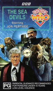 'Monsters? Coming out of the sea?' The Master watching The Clangers in prison, Jo's trouser suit, the Royal Navy stock footage and, of course, the Sea Devils rising out of the ocean. These images are always fondly recalled whenever The Sea Devils is discussed. This serial seems to be one of those remembered as a set of icons rather than a story, as such. We might reminisce about the Doctor and Jo trapped on the sea fort, but would be hard pressed to remember how or why. Then there's the spectacular gun battle between the Navy forces and the Sea Devils, but what was it all about? Maybe the plot doesn't stay in our minds because we've heard it all before somewhere... 'Those reptiles were once the rulers of Earth with my help they can be so again...' Inevitably The Sea Devils must bear comparison with the first Malcolm Hulke 'Eocenes' story, Doctor Who and the Silurians. Very broadly speaking, it is in fact, the same story (apart from the more obvious differences and setting). So I won't bother to detail the plot here. Instead, an examination of some of the characters in this entertaining story raises some points. Once again, it seems that iconography comes into play. Replacing the complex characters and relationships found in Doctor Who and the Silurians, we have altogether far more stylised figures: Parliamentary Private Secretary Walker, Captain Hart, and the wonderfully portrayed Trenchard. All very enjoyable, but not in the same grittily realistic league as their earlier counterparts. The Sea Devils themselves appear to be mute, apart from their leader, and therefore speak with only one voice. Inevitably this negates their individuality and reduces them to the status of 'grunts'; a far cry from the very distinct Silurian personalities. Even the Master's involvement, though welcome as always, seems very simplistic. His motivation this time appears to be purely one of revenge: the destruction of the human race that is responsible for his imprisonment and so special to the Doctor. Jo is given quite a lot to do, showing an uncanny knack for locating rooms in which the Doctor is imprisoned, but is ultimately fairly ineffectual. Given that she isn't Navy personnel, it would have been great to see her stand up to the obnoxious politician Walker, as many of the later companions would no doubt have done. (Even Sarah would have landed a stinging feminist attack, and Leela would probably have filleted him.) However, I suppose that being a member of UNIT, Jo is still a Government employee, and so would have to watch her over-glossed lip. The Doctor once again tries to mediate between the two races and strives for peace. It seems ironic that his final solution: the fiery destruction of the Sea Devil base, is exactly the same course of action which the Brigadier adopts at the conclusion of Doctor Who and the Silurians, much to the Doctor's shock and total disgust. Not capitalised upon in the televised version (appearing to be merely another 'serial-capping explosion'), the irony of this situation didn't escape Malcolm Hulke's attention in the novelisation: